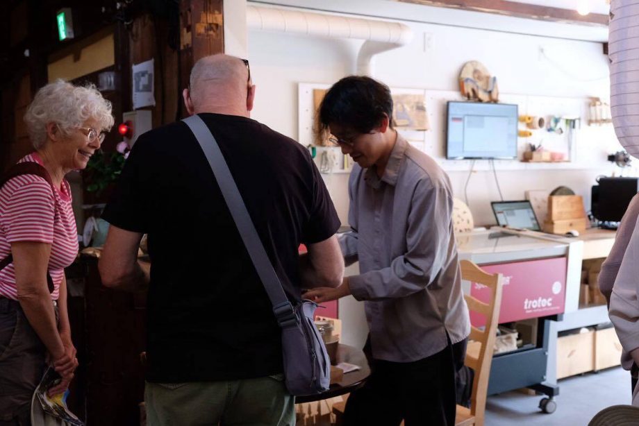 昨年、FabCafe Hidaの中庭で森の茶室を開催してくれたり、これまでもヒダクマと関わりの深いnoixさんが愛知県から駆けつけてくれました。