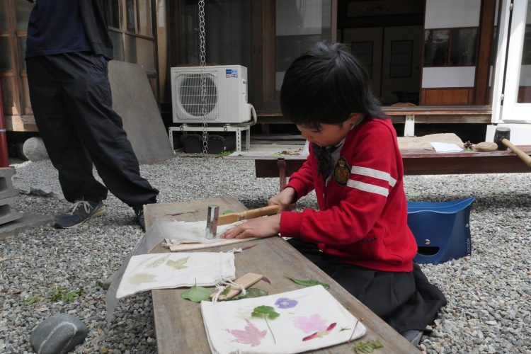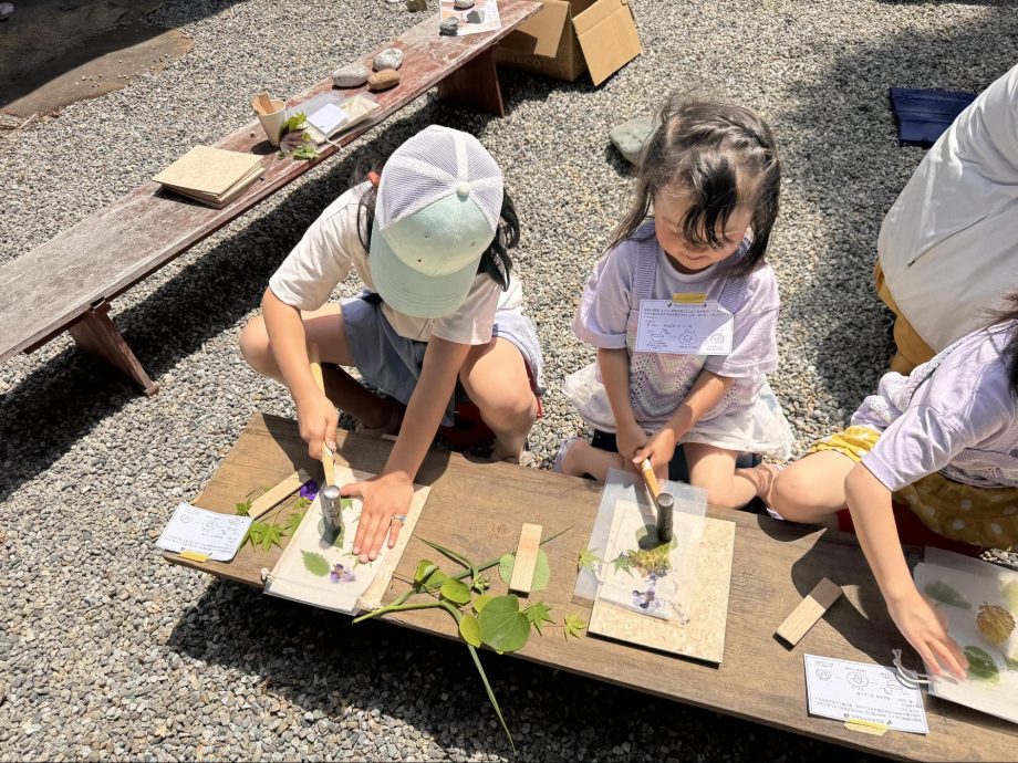 ヒダクマのさやは、中庭やまちにある草花で簡単にオリジナルの巾着ができる「たたき染め」のワークショップで出店しました。「もっとやりたい」「家でもできそう!」などと楽しそうに子どもから大人まで、みなさん夢中になっていました。