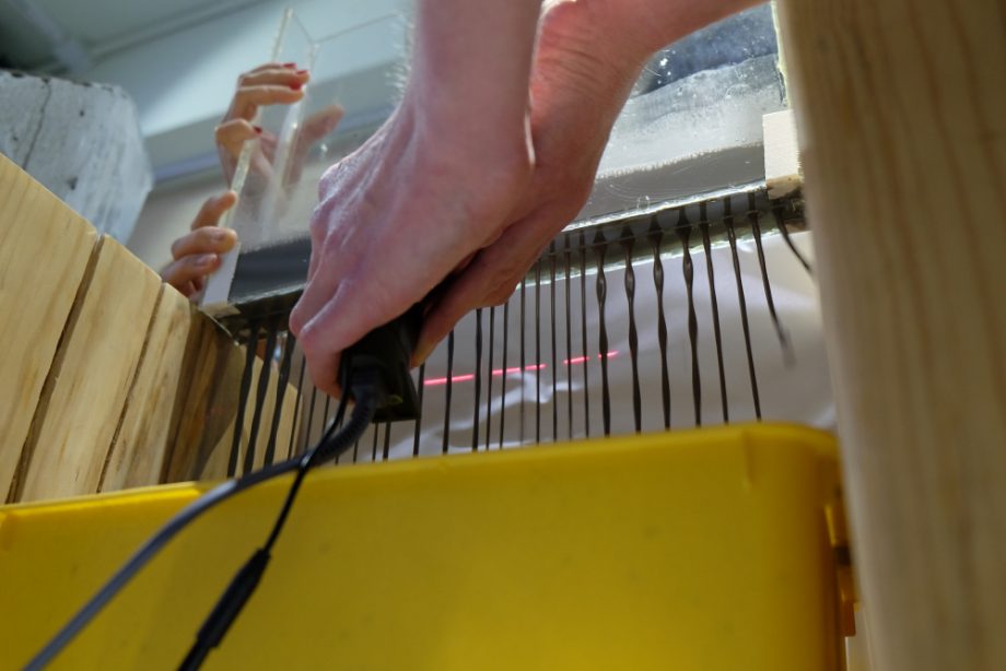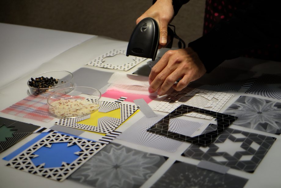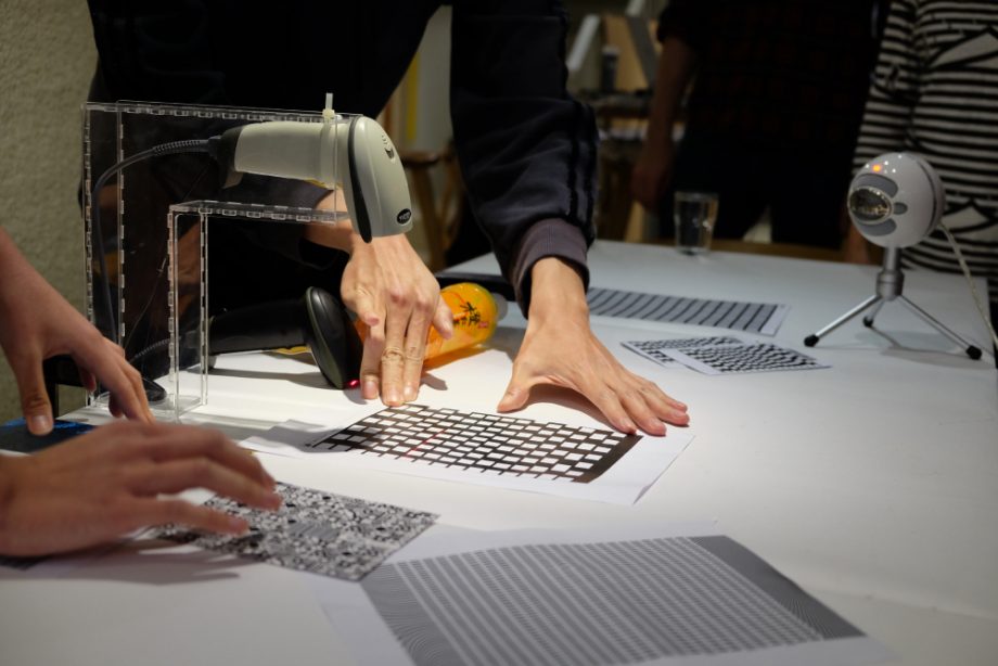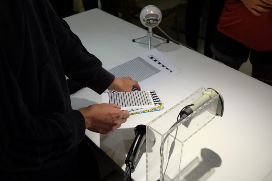 バーコーダーで縞模様の紙をスキャンしながらどんな拡張表現ができるか模索する.
