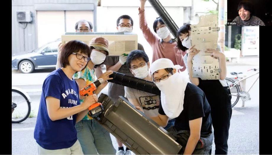 どのようにエアコンを楽器にトランスフォームさせたのか説明している和田さん。