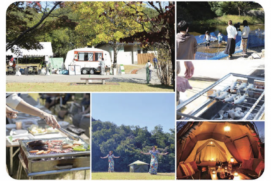 2022年の公民連携公園利活用トライアル事業に先駆けて2021年に実施された「おそとチャレンジ」の様子。この写真は、グランピング体験「こたつとワイン」や地域行事(宝が池公園利活用推進運営委員会)。