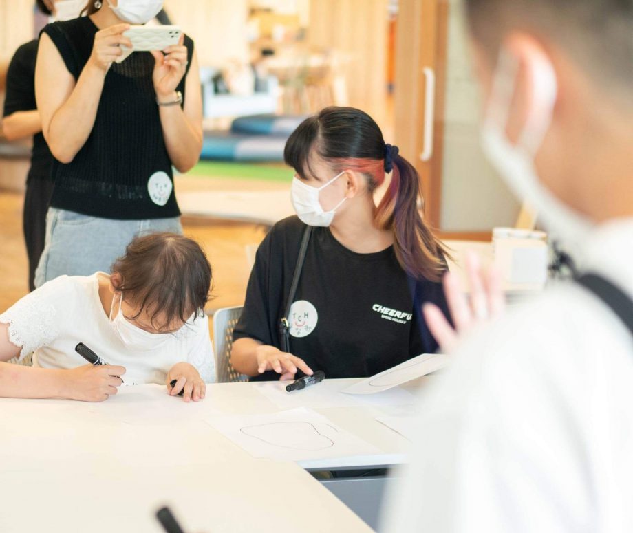 2023年7月22日、快晴の大阪・鶴見緑地公園内に位置する「TSURUMIこどもホスピス」の中庭には、この日、たくさんの水たまりが並んだ。線を引いたら形になる、下を向いたら空が見える。そんな、施設を利用する子どもたちに向けて行われたFabCafe Kyotoによる出張ワークショップの様子をレポート。