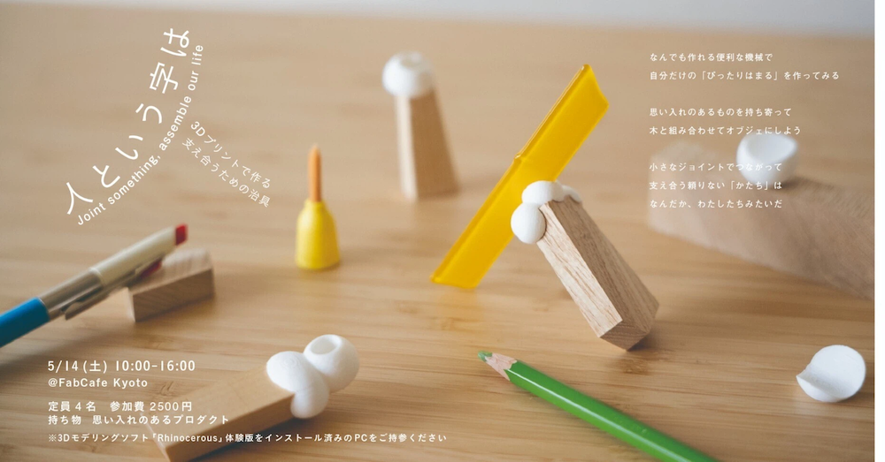 私たちの生活を豊かにしてくれる(はずの)3Dプリンターと、私たちはどこまで仲良くなれているでしょうか。3Dプリンターの旨味をなるべく味わえるような入り口を作ることで、なんかいろいろできそうじゃん、とみんなに気軽に思ってほしい。そんな考えから、3Dプリンターや出力できる造形物の旨味を洗い出し、気軽に参加できるワークショップの骨子を組み立てることにした前日譚。FabCafe Kyoto名物企画「人という字は」が生まれるまでの道のりをぜひご覧ください。
