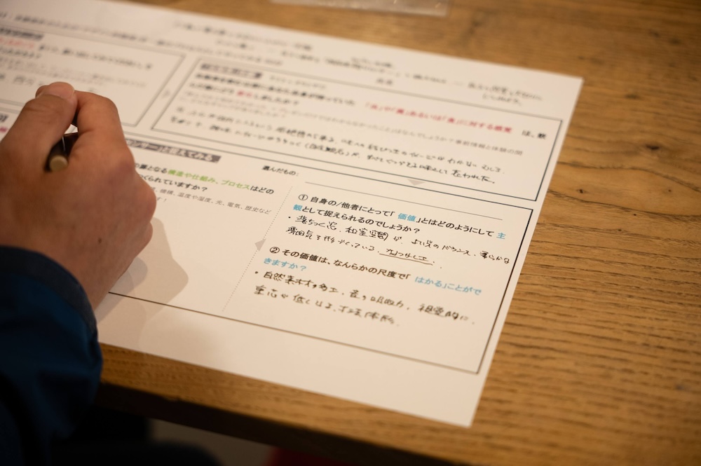築120年の木造建築をリノベーションし、館内に様々な素材を常設する FabCafe Kyoto をあらためて観察。視覚だけでなく触覚や嗅覚など五感を総動員して「自分にとっての “いい” 」を探します。