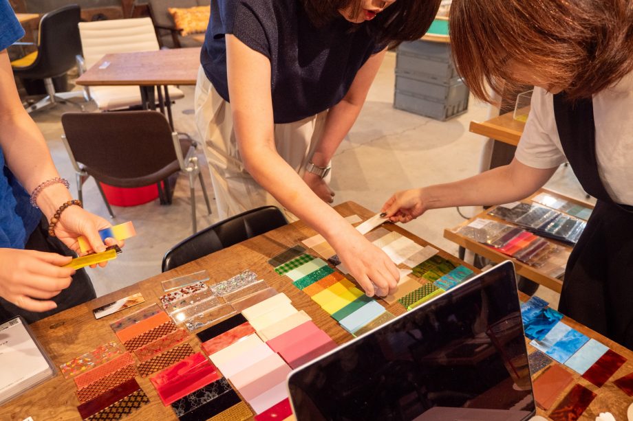 今回使用した東京アクリルの素材は、FabCafe Kyoto店頭で常設販売しています。1gから購入できるため、気になるパターンのアクリル素材をお気軽に試すことが可能です。