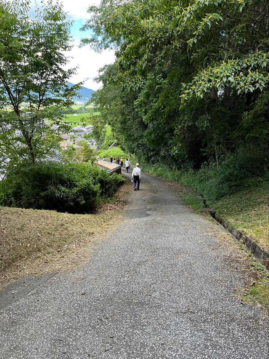 バスを降り、日本家屋を横目に坂道を登っていく。初めは順調だったが、家々を抜けた先に急な坂が待ち構えていて、これが思っていたよりしんどかった。かなりの勾配に息が切れて汗が吹き出す。セミの鳴き声が体力を削っていく。