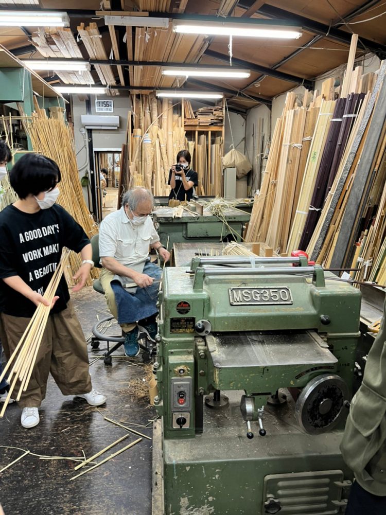 事務室ですだれについてのレクチャーを受け、各工房も案内していただいた。荘厳な佇まいの編み機は、修繕を繰り返して何年も何年も使い続けられているという。博物館のショーケースの中にいても違和感がないのに、まだまだ現役だというから驚いた。葭の一本一本が紡がれ、すだれとしての命が吹き込まれていく。人の手と編み機とがうまいことかみ合って綺麗に編まれていくから、すごい、すごい。