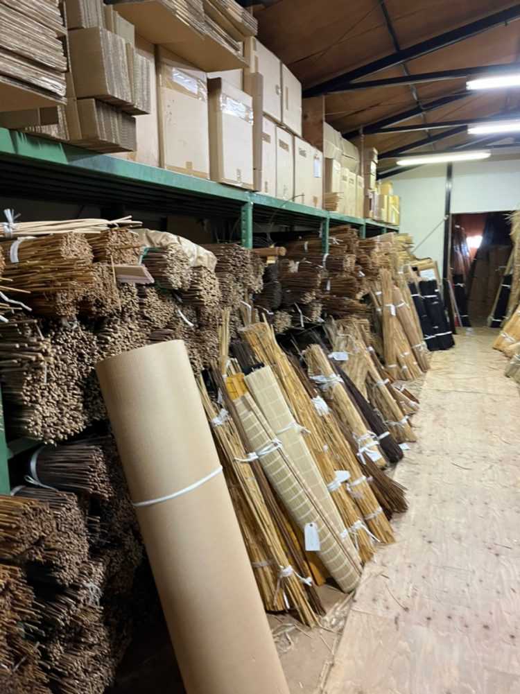 二階に上がると、そこには濃淡さまざまな葭が所狭しと眠っていた。5年分の葭が貯蔵・乾燥されているらしい。それに加え、代用萩やマコモなどさまざまな素材も並んでいる。他の部屋とは温度も匂いも違う。暑い。匂いも空気も濃ゆい。ここにひっそりと息をひそめるものたちが、すだれとなって太陽の光に照らされる日はいつ来るのだろうか、そしてそこにはどんな風景があるのだろうか、そんな想像が膨らんだ。