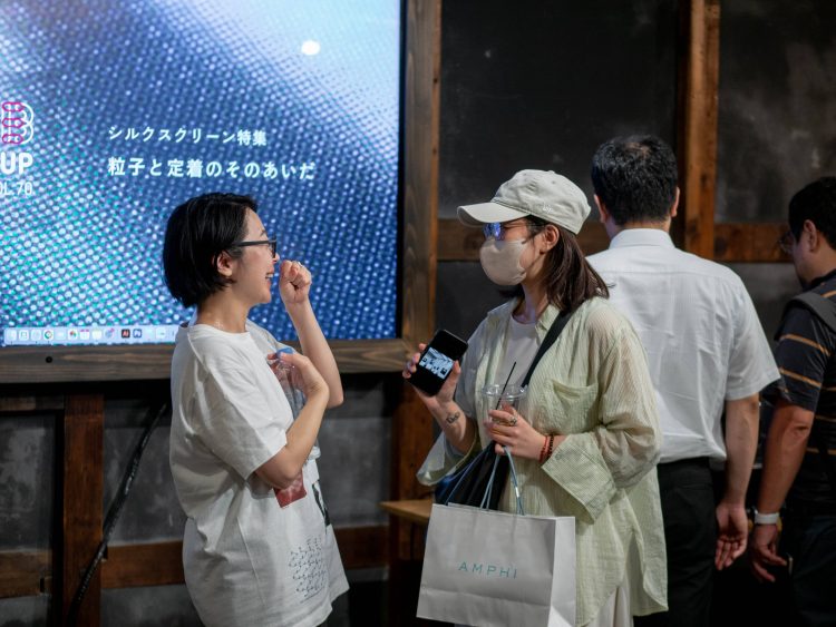 7月末にFabCafe Kyotoで開催されたFab Meetup Kyoto Vol.70は、“シルクスクリーン特集”ということで、製版機や染料、そしてフィルムを製造・販売するメーカーの方、イメージの定着方法や印刷技術を多角的に見つめて制作するアーティスト、写真家の方々をゲストにお招きしました。当日は京都の製版機・染料メーカーの方と、光や染料がもたらす事象を追求する方々のトークイベントが行われました。「写し取る」ことで生み出される表現の話、痕跡として版画を捉えること、光・色素・支持体の関係性など、シルクスクリーン印刷から派生した「つくる行為」について、参加者同士で新たな解釈を共有する時間となりました。