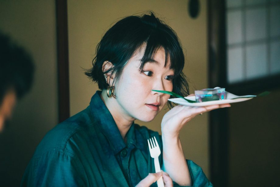 庭園の植物を味覚で直接的に味わおうという作品。庭の主役である木草花と、それ以外の”あいだ”や”空間”を透明なまま錦玉羹の中に表現した。つつじの花を閉じ込めた羊羹は、珈琲茶会の茶菓子として提供された。