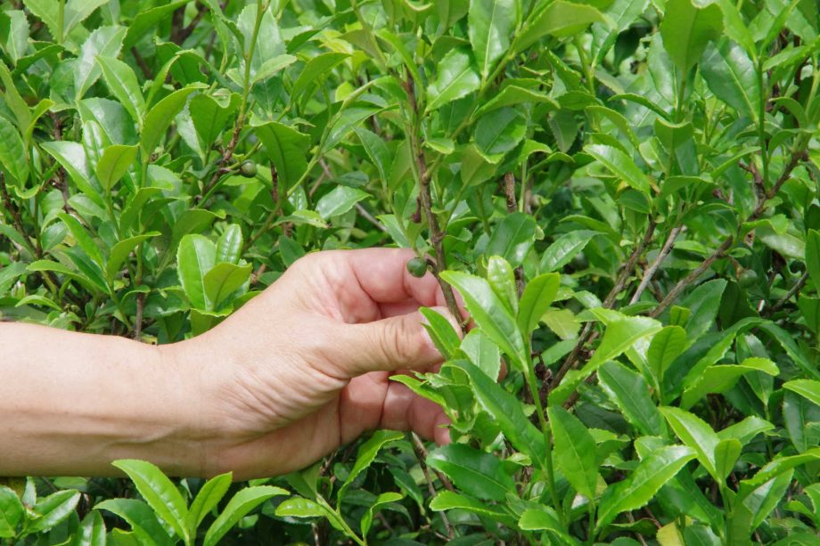 一つは、茶畑の多くが主に挿し木によって単一品種の畑として作られてきたことがあります。挿し木とは、株の一部を切り取り発根させて増やす方法のことです。このようにして茶畑を作ると、成長する個体全てが同じ遺伝子を持つために、畑全体として品質を画一化でき、木の高さもほとんど同じになるため茶摘みしやすいというメリットがあります。ところがチャノキには自家不和合性といって自家受精しにくい性質があります。そのため挿し木=品種=によってできた茶畑は全体が同じ遺伝子の木で構成され、ほとんど結実することはありません。
