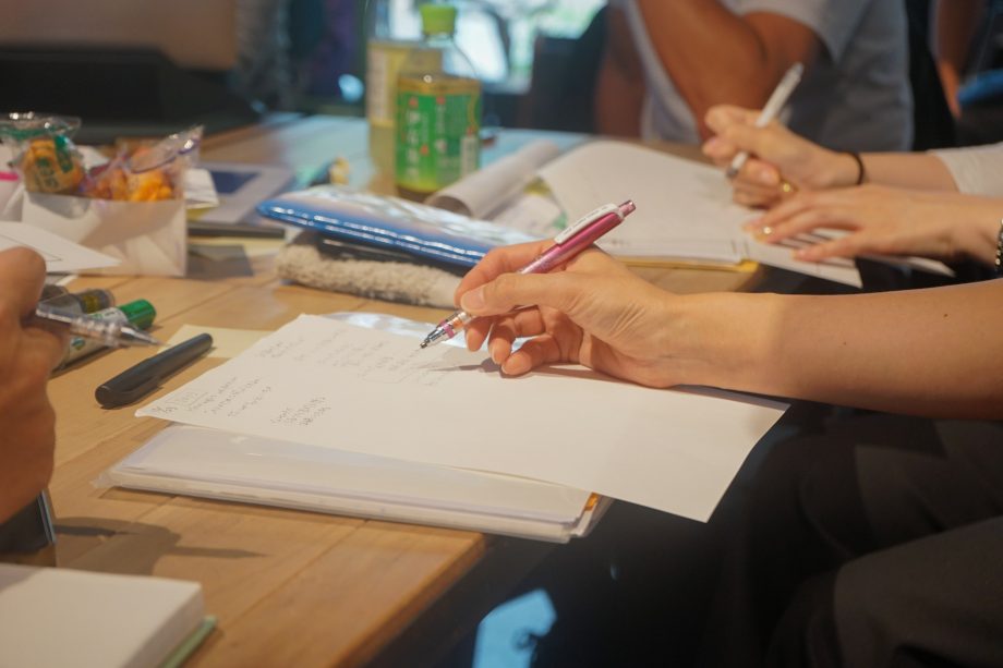 創作意欲がぐっと高まったところで、すぐにでも作り始めたいところですが、と、その前に。改めて、今回のプロトタイピングを通じて誰に、何を検証したいのか、目的を明確にするためにディスカッションしましょう。この確認を怠らないことで相手(ユーザー)と対話できる状態に持っていくことができます。