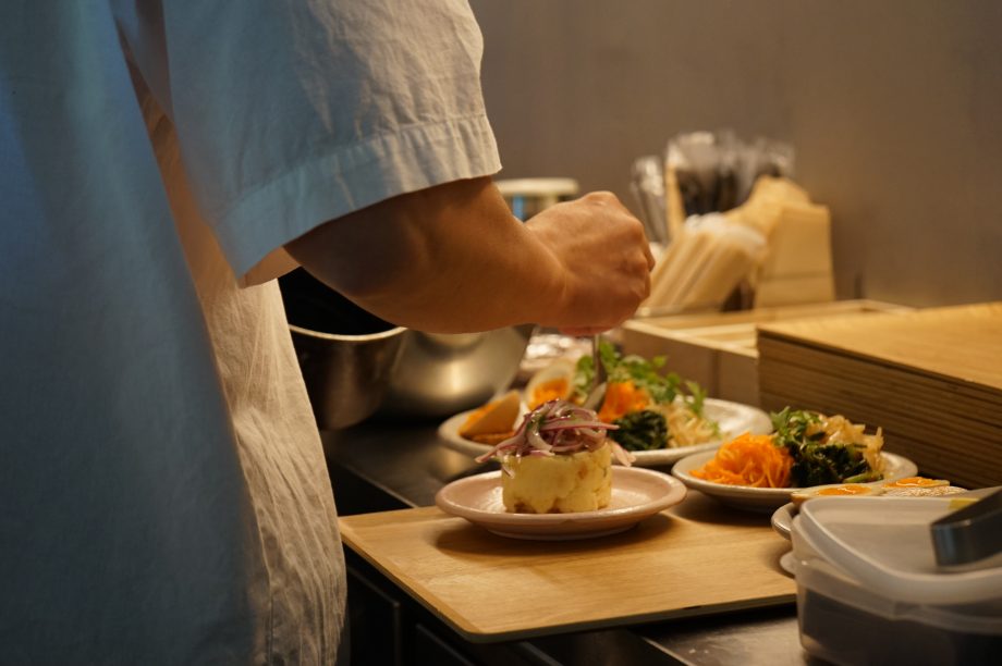 FabCafe Nagoyaがクリエイティブ・ハブであるからには、新メニューにも“創造性”を!と、「ポテトサラダ」はたくあんが隠し味になっています。また「ビビンパ」や「ナムル」に使われているコチュジャンも、地物の赤味噌と白味噌をベースに作ったオリジナル。クリエーターである2人の創意で新メニューはレストラン・クオリティに仕上がりました!そして何より優秀なのは仕入れの流動性をもレシピの“材料”にしたメニューの再現性の高さ。旬な野菜へシフトしていくほど新たなマリアージュが生まれる創造性を余白に残しています。