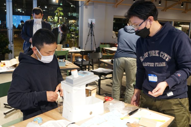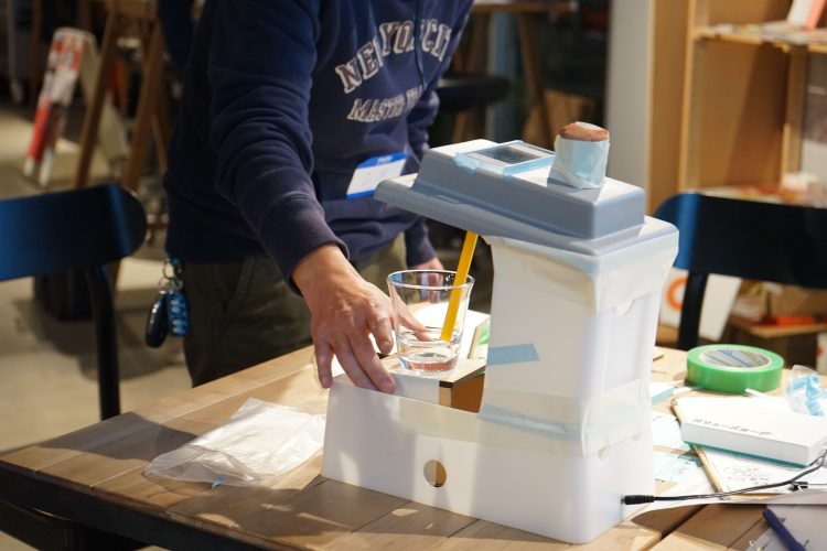 - 「素材に焦点を当てて苦戦していたが、問いを投げかけ続け、炭酸水の価値、循環要素など課題解決の条件を足していき、プロトタイプにたどり着いた過程が素晴らしい」(加藤・評)
