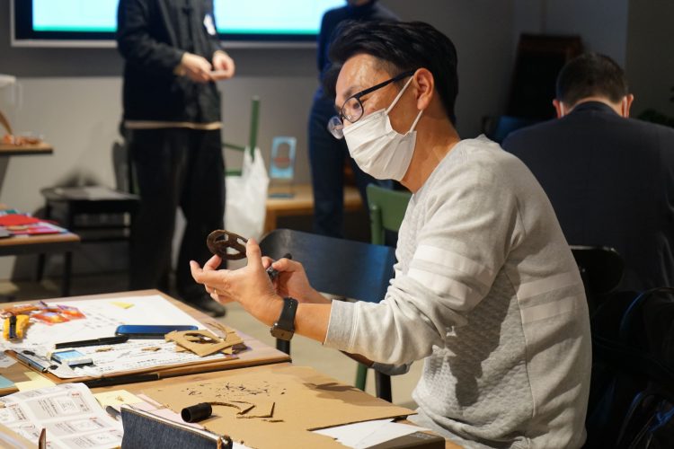 では、それぞれの得意分野を持つ参加者ならではのアイデアは…?実際に事業化できるレベルでのプロトタイピングを目指す今回は、自社製品を循環の観点から改めて分析したり、そもそものニーズを探るためFabCafe Nagoyaの利用客にインタビューするなど、およそ2時間をかけて徹底的なリサーチが行われた。