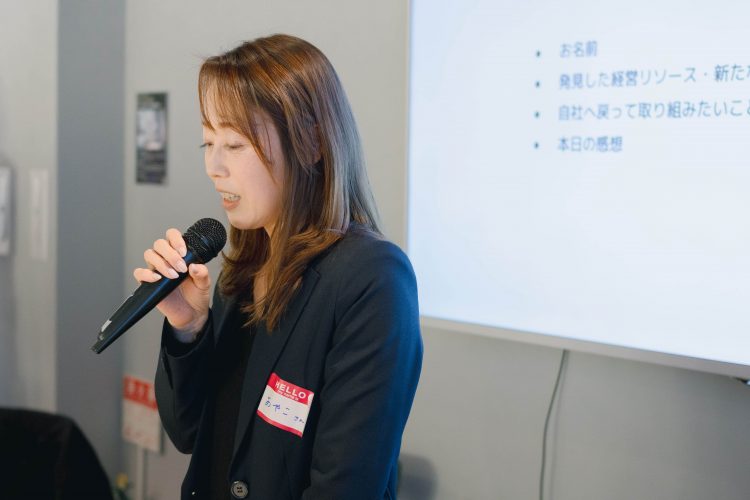 自分(自社)だからできることとは?社会的な存在意義は?こうした問いを腹落ちするまで考える。そして、事業の本質を問い直してください。あなたがやる意味はありますか?それはずっと持続できますか?そもそもSSって?何を提供しているの?自分たちが何者かを問いかけた上で、何をどう提供するか。そのために市場を分析すればいい。そうすると、顧客への“語り方”が変わるんです。我々はこういう存在です、と語り出すと、顧客が相談してくれるようになる。すると、共創が生まれ、パートナーが増える。事業に関わる人々が、想い、ビジョンを語り、ぶつけ合う、“対話の経済”が出来上がる。よりより社会をつくるためには、これをやっていかないといけないと思うんです。(講師・土生さん)