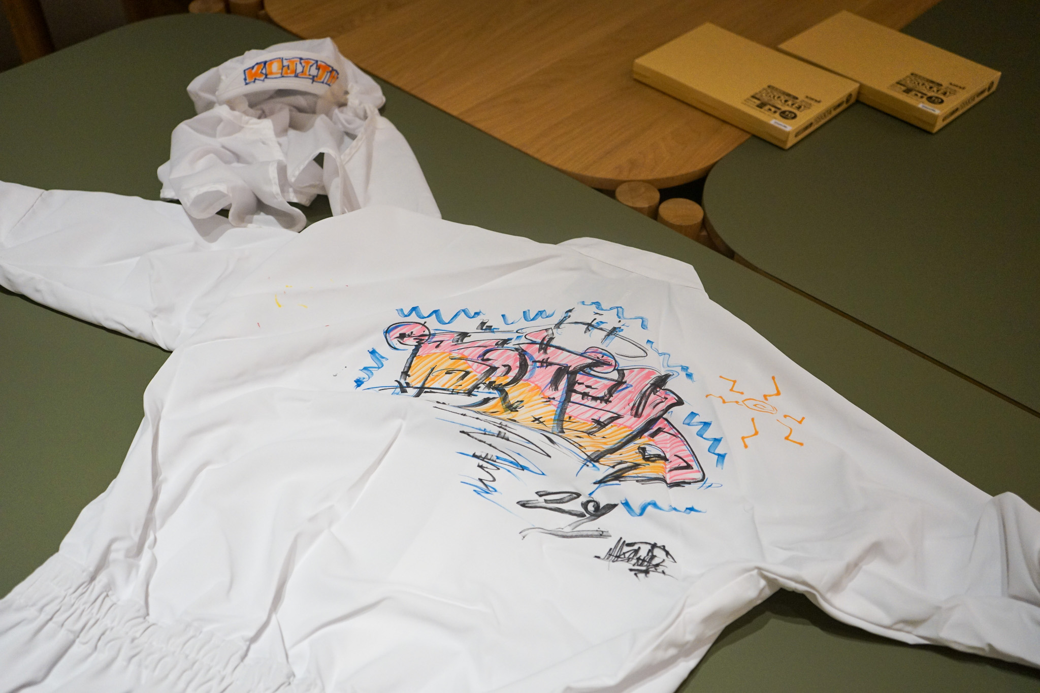 その場で作業着に加えられたグラフィティ