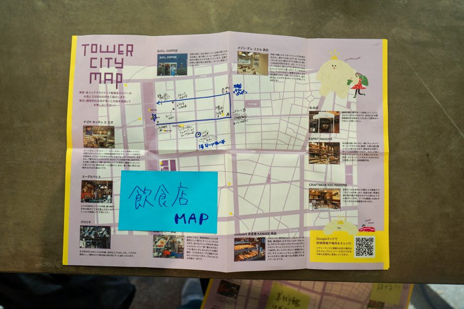 TOWER CITY MAPは、東桜・泉エリアの魅力を発信するために、「東桜エリアマネジメント勉強会」が発行。地元で活動する方々や勉強会参加者のおすすめスポットを掲載しています。エリアの魅力を発掘するプロジェクト「TOWER CITY CLUB」の一環として作成され、新たなお気に入りを見つけるきっかけとして活用されています。