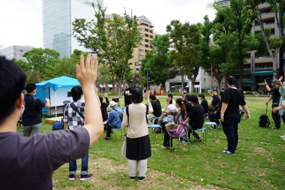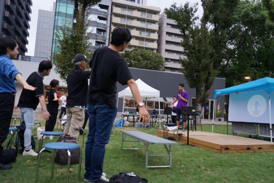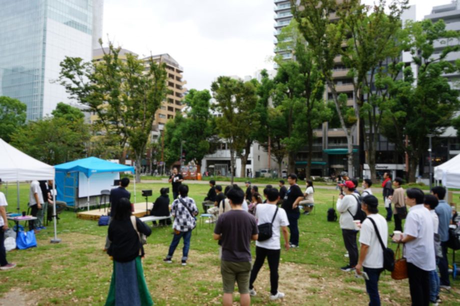 イベント当日はFabCafe Nagoya様の目の前にある久屋大通公園内「シバフヒロバ」のスペースも利用しました。