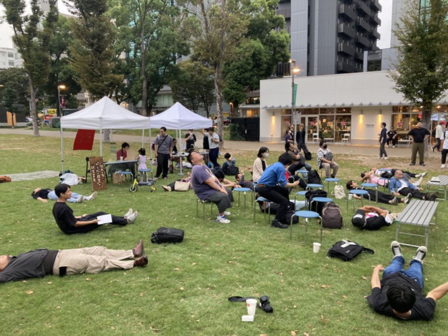 トークイベントにもかかわらず、聴衆も寝そべるという状況になったのは、はじめて見ましたし、屋外のシバフヒロバならではだったかもしれません。