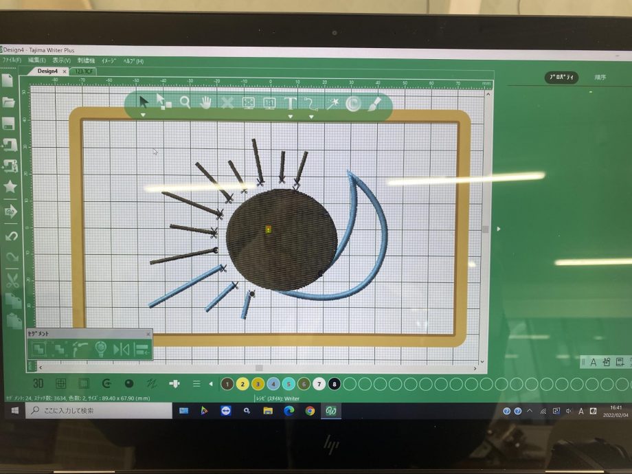 パソコンの画面にタッチペンで直接描いたり、マウスでパスを使いながら形を作ったり、実際に刺繍した時のプレビューが画面に表示されるので、仕上がりをイメージしやすく、とっても楽しく制作できました。