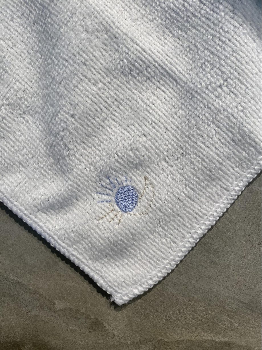 ハンカチでは少し縦長になっていたところも、データを横に伸ばして修正をしたところ、とっても綺麗に仕上がりました!広範囲に刺繍すると存在感がありますね。