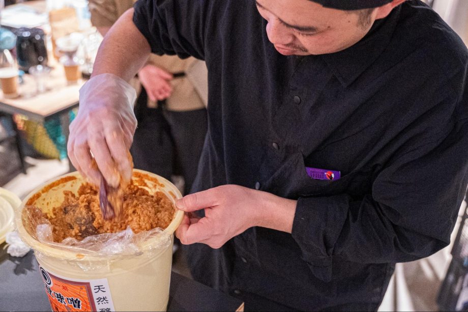 能登半島の漁師・中田洋助さんから仕入れた鰤を、天然醸造味噌の伝統を守る味噌蔵「新出商店」で漬け込んだ