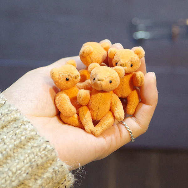 金木犀をテーマに作成したというテディベア。金木犀の4枚の花弁を模して、小さなオレンジ色のテディベアを4体作ったのだそう。
