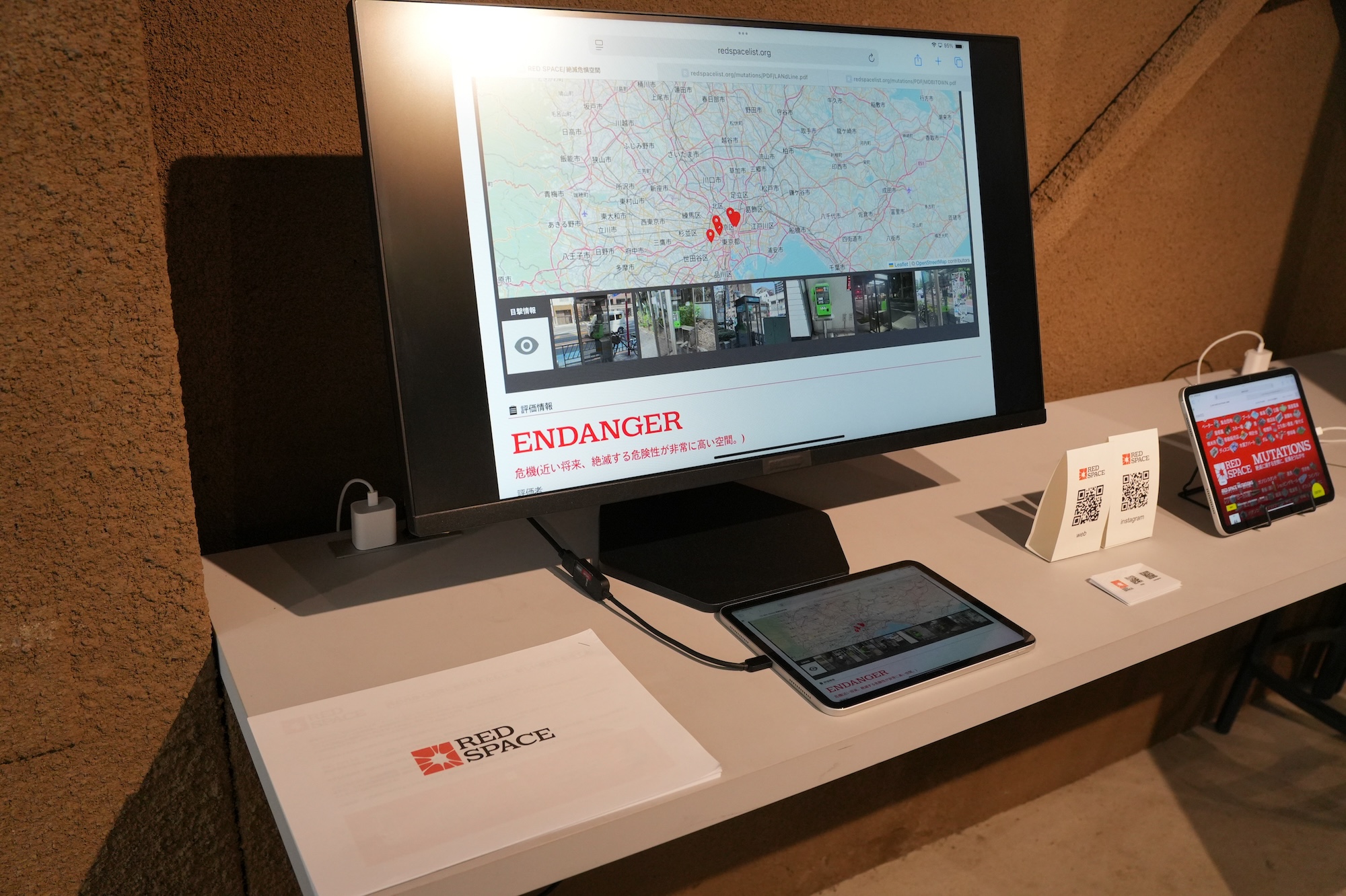 「RED SPACE」は、そんな“絶滅”の危機に瀕する空間インフラを『絶滅危惧空間』と名付けて再評価することで、それらがどう“変異”し、未来にどう持続してゆけるかという可能性をひらく試みです。ここでは、絶滅危惧空間の一つである自動車工場がルーツであるFabCafe Osakaで開催された2週間の展示の様子をレポートします。