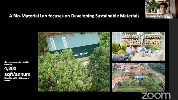 はじめは「growbox」というキノコを作るキットを作ることからスタートしたというMycotech Lab。その後、テンペというインドネシアの大豆発酵食品からインスピレーションを得て、キノコの菌糸で繊維を固めてレンガのような建材を作ることに成功。そして、キノコの菌糸を活用したヴィーガンレザー「Mylea」を開発し、インドネシアで地元の農場と連携して、マッシュルームレザーの工場を運営し、地元のコミュニティとの連携により、地域に雇用も生み出しています。今では、インドネシアのファッションデザイナーなどとコラボレーションして、さまざまなプロダクトに展開しています。
