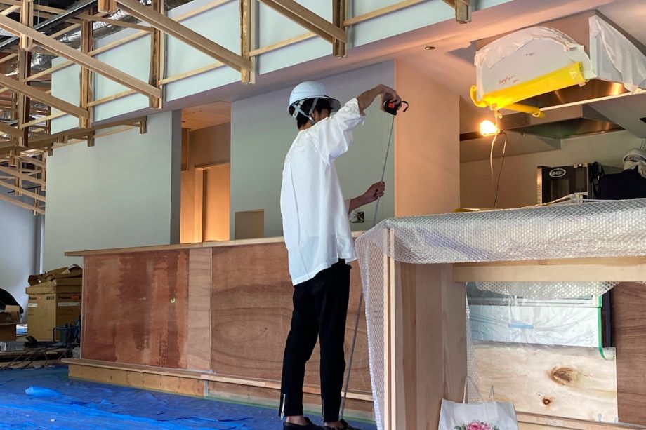 これは愛さんかなと(笑)。廣川さんが打ち合わせの際にいくつかポイントを話してくれていたと思います。奥に愛さんがいらっしゃる時の打ち合わせは面白くて、目の前にある単純なディテールの話をしているようで、空間全体の構成やさらにその先にもつながっているような、遠くの話をしているんだなと後々気付かされました。「これを何とかつくってください。」と言われる度、それはちょっと無理なんじゃないかな…と思いながらですが。
