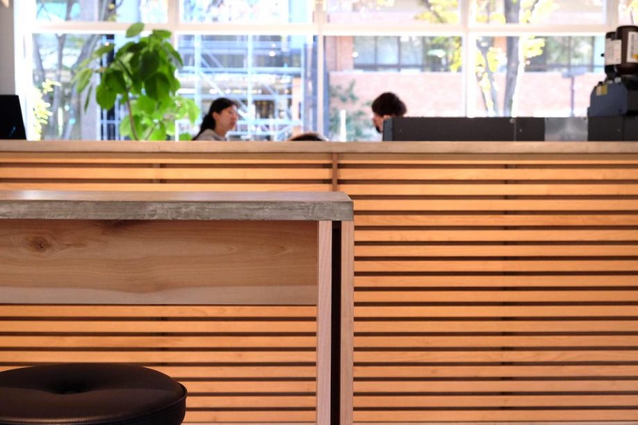 天井架構をデザインしたことは、このプロジェクトにおいて大きなことではあると思うんですが、自分はこの大きなカウンターが好きです。今、カウンターにお客さんがいらっしゃるように、人が集う風景を公園からも建物の中からも見ることができる。そういった内と外の関係がつながっていくといいなと思ってます。