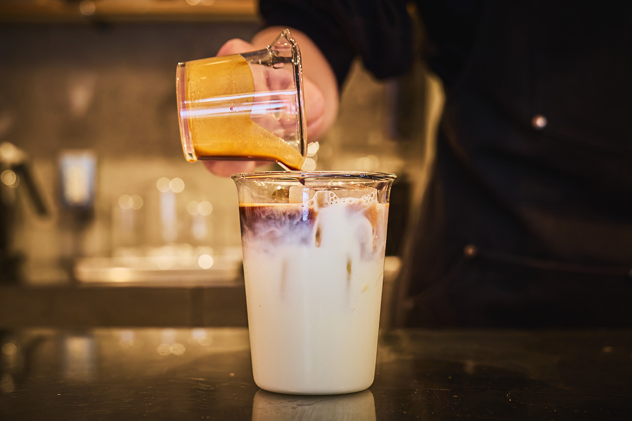 コーヒーメニューの中で一番人気なのは、やはりカフェラテです。初めて来る人に、まず飲んでほしいメニューでもあります。バリスタは全員、カフェラテを美味しく出せるように研究しています。あとは、レモネードにエスプレッソが入ってる、エスプレッソソーダも常連さんに人気です。