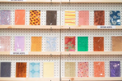 東京下町、足立区にあるアクリル加工工場で作られるミユキアクリルを使用してオリジナルのバレッタをつくります。 ミユキアクリルは、6,000種類以上種類があり全て職人による手作りの素材です。 そのため、場所によって色や模様が異なり世界に一つだけのアイテムを作ることができます。 よく見かける透明・半透明・不透明のアクリル板はもちろんのこと、ラメやパール・べっ甲・マーブルなど普段なかなか目にすることがない素材をたくさんご用意しております。