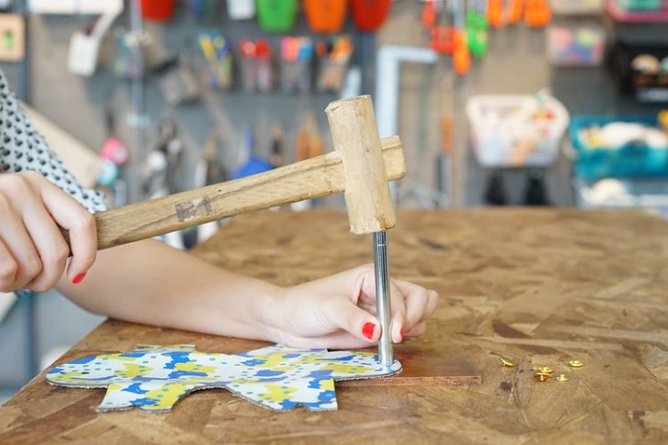 FabCafeでご用意しているハトメとバネホックで固定し完成です。