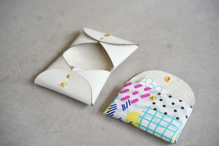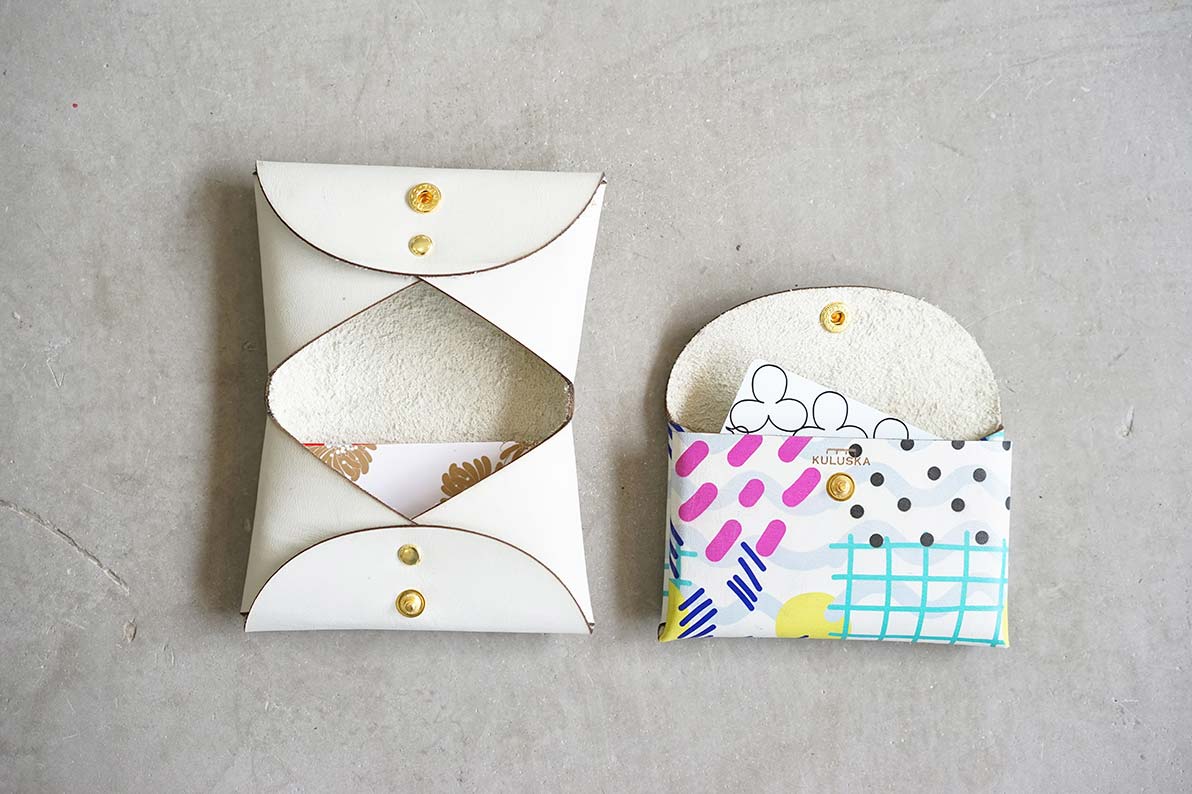 数種類の革と、3種類の型のご用意があります。お好きなものをお選びいただき、その場で革をレーザーカットしカードケースをつくることができます。