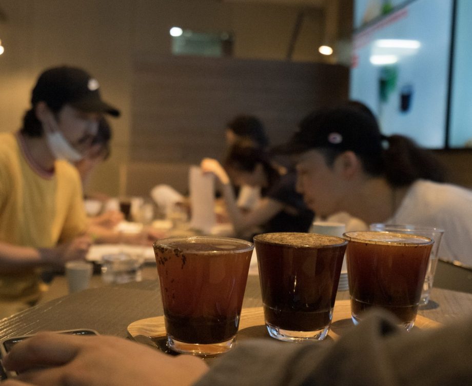FabCafeのバリスタ主催のコーヒーセミナー、スペシャリティーコーヒーの説明や、農園違いのコーヒーの飲み比べを実施