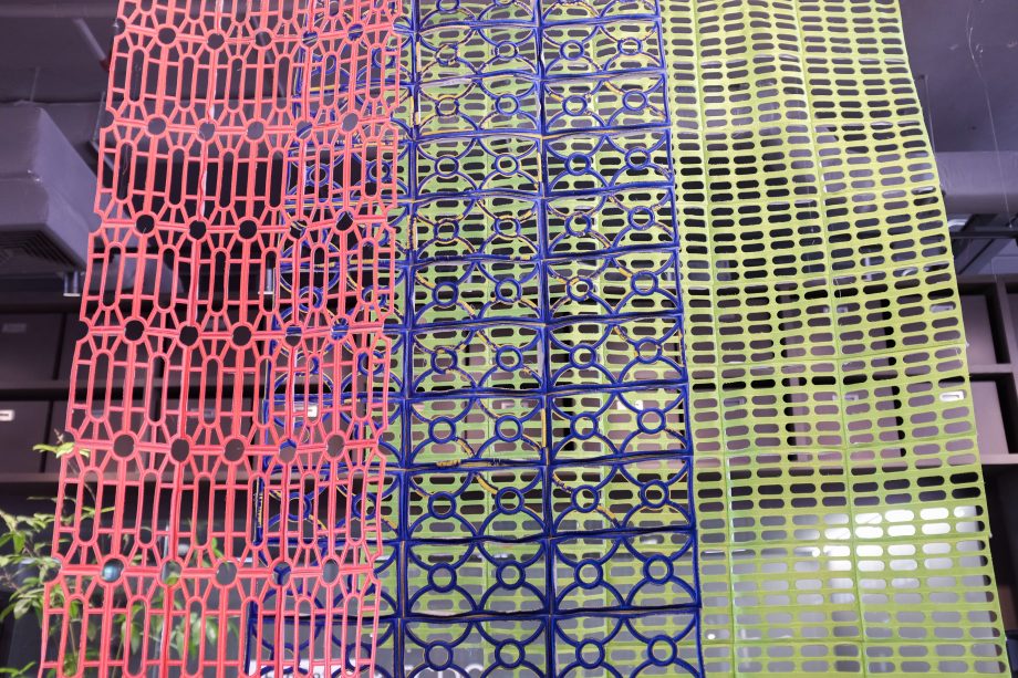 Enacting such cultural cinematics by using culturally local elements such as ventilation block serves to reframe cultural identity by telling local stories through space in this textile space divider.