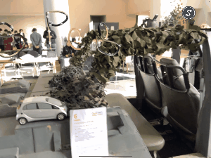 Hasebe creating a SPCS sign over the SPCS booth using his AR experience called World’s Palette that was a finalist in the NEWVIEW AWRDS2021