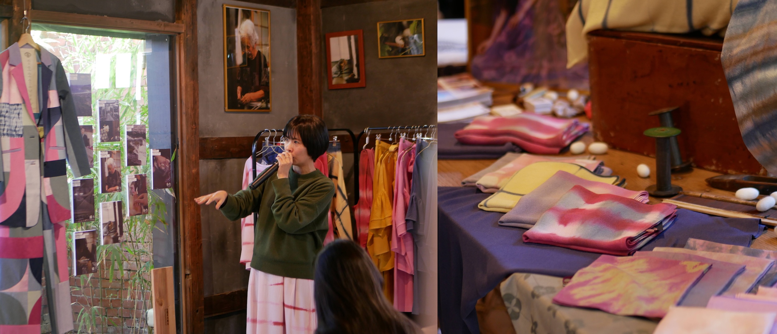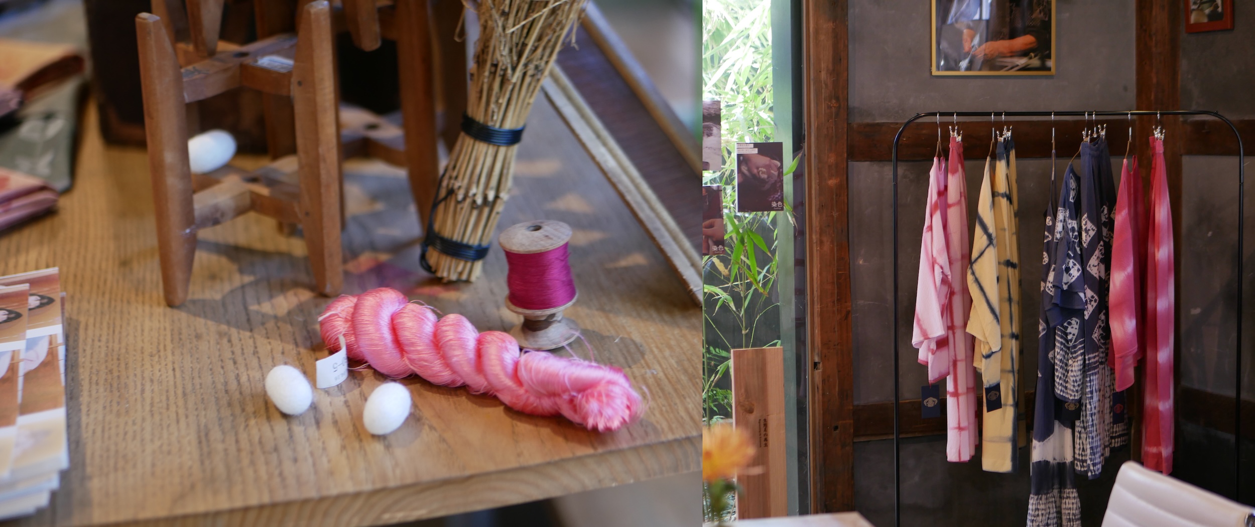 MORI WO ORU Design Studio integrated silk cocoons into their display. During the event, they also screened a documentary film named “Weaving the Forest” which they produced. The documentary conveys the beauty of life through Japan’s silk weaving industry.