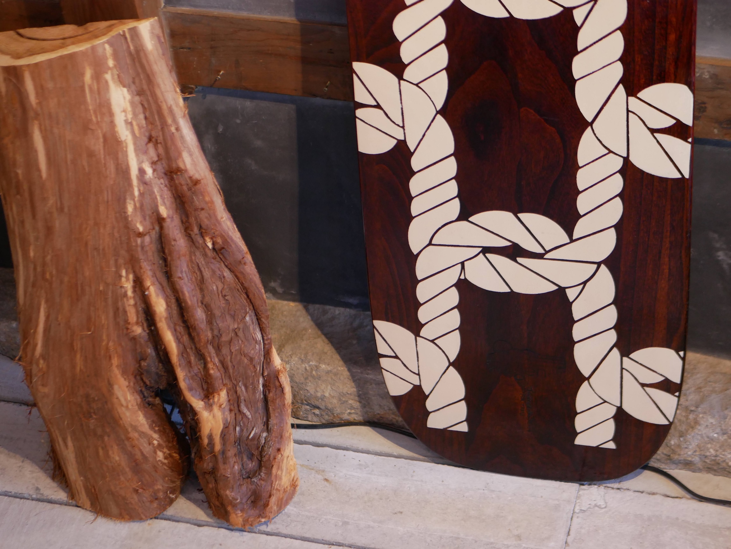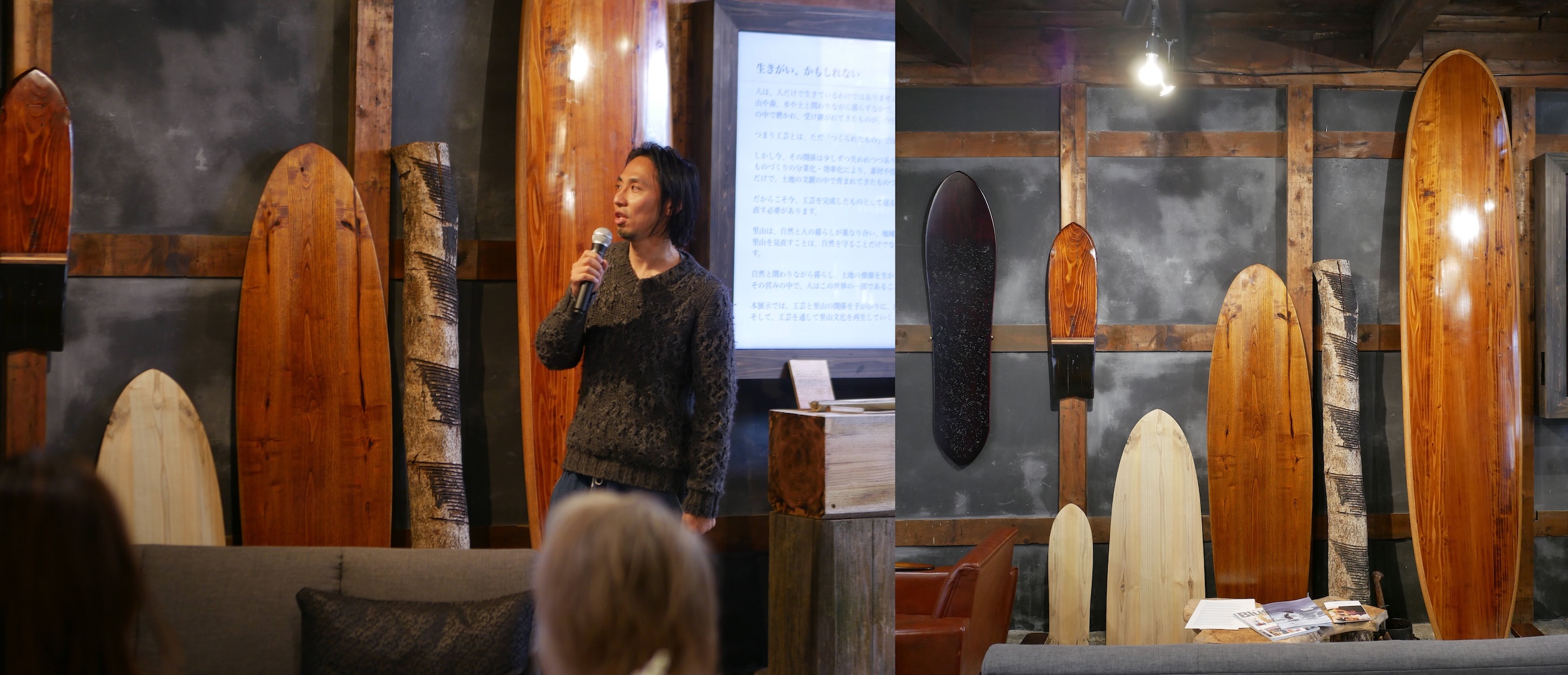 Surfboards on display by Tsutsumi Asakichi Urushi Inc., a lacquer manufacturer that was founded more than 100 years ago in 1909.