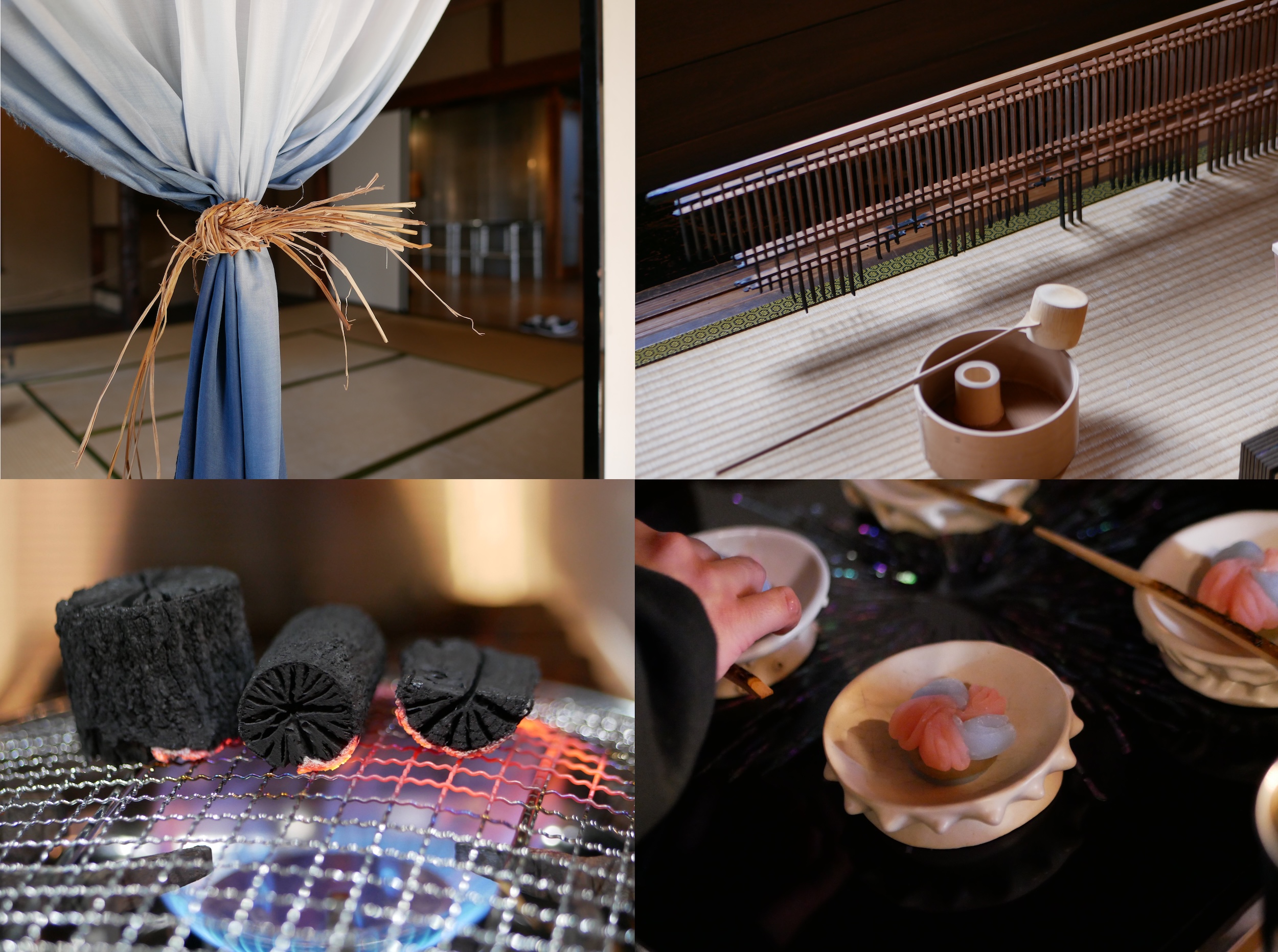 The exhibition featured MORI WO ORU (silk textiles reconnecting natural and human ecosystems), MUJUN (knife-making and satoyama regeneration in Shimane), Tsutsumi Asakichi Urushi-ten (urushi lacquer refining spanning generations), and tea practitioner Matsumura Soryo. Alisa Evans coordinated the tea ceremonies. Shingo Yamazaki (Director of DIALOGUE) curated the exhibition.