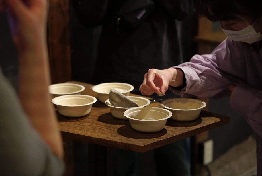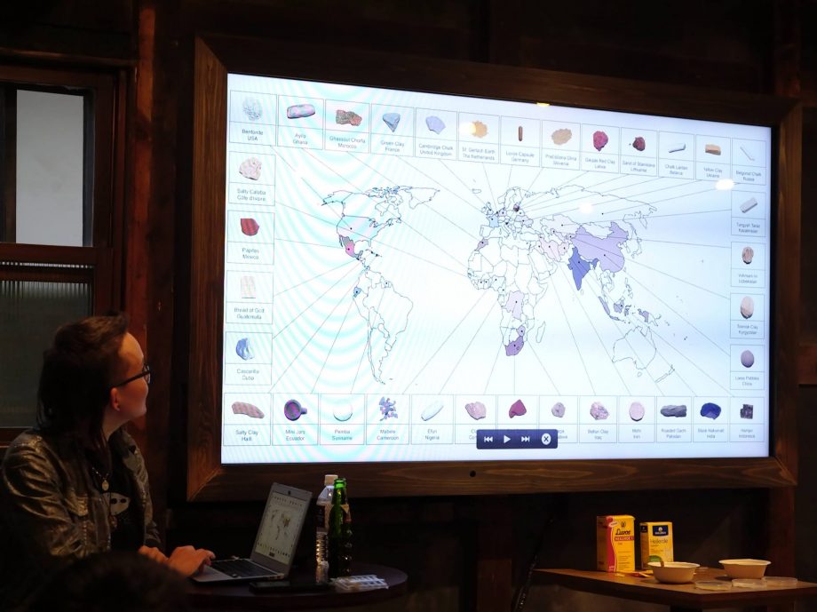 When we invited masharu to Kyoto, we swiftly organized a creative meetup as the central activity of the tour. We reached out to local researchers and artists interested in gastronomic practices, and even though it was Golden Week (one of the longest public holidays in Japan) we managed to gather a considerable number of participants. During the meetup, masharu presented the Museum of Edible Earth and provided edible earth samples from around the world so that participants could taste them and engage in casual discussion over cold beers.
