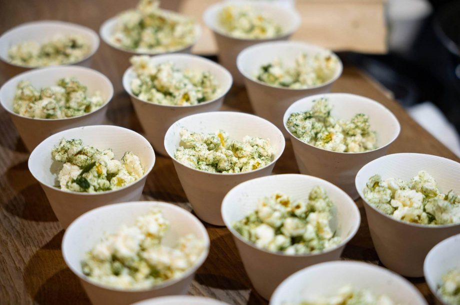 Popcorn covered in Sea Vegetable’s “dried green laver shavings” was distributed at the event. The rich aroma and flavors from just one bite were all it took to elicit surprised reactions of, “Did dried green laver always taste this good?”