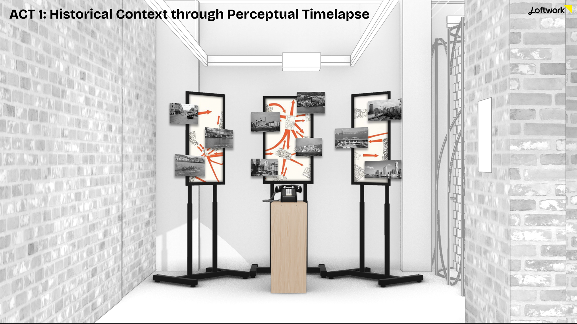 Upon entering the exhibition and picking up the receiver, visitors embark on a three-act immersive experience: