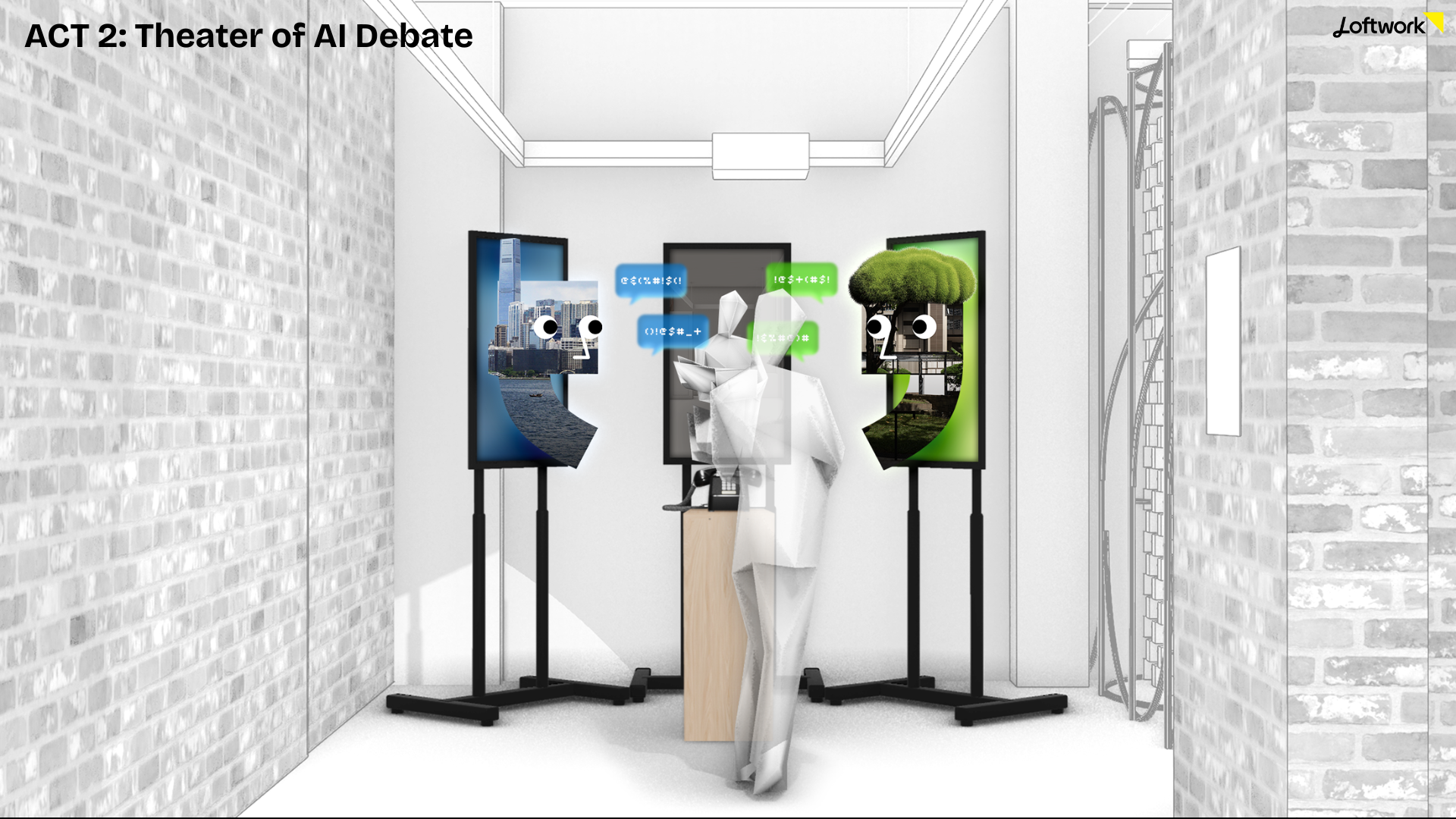 As the core of the experience, two AI agents are designed to debate three key topics regarding North Point’s development: