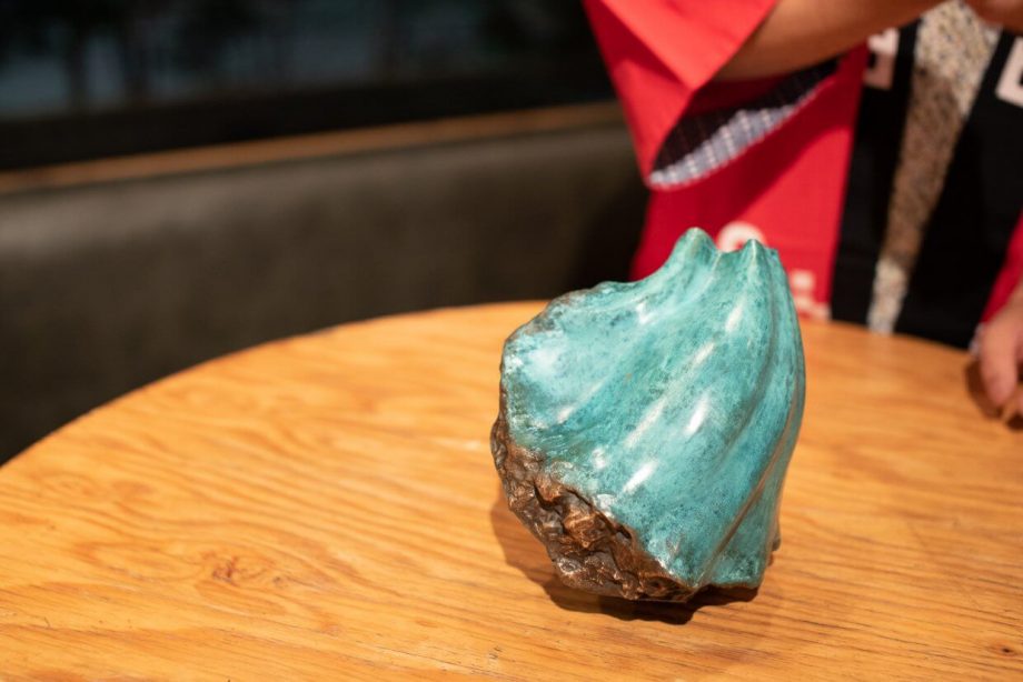 Tsuyoshi Ueda, who handles metalwork through casting and coloring, also took the stage.The coloration of metal, which involves the creation of colors through complex chemical reactions, does not have the any techniques that allow the creator to manipulate the work in a reliable manner. There is extremely low reproducibility, so, even if you try to make a similar piece, it definitely won’t be easy.