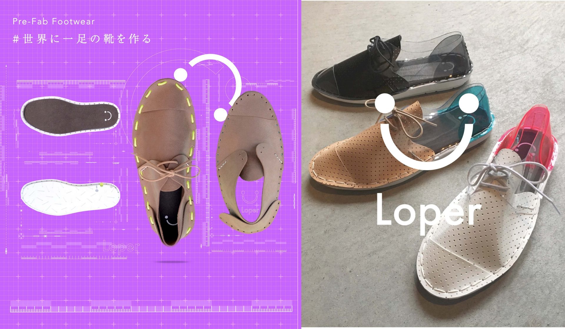 「誰もが靴が作れる世界を作る」を目標に6年の構想とキットの開発までに1年をかけ、2018年末に発表。伝統的なレザークラフトと、ストリート感覚のスニーカーを組み合わせたユニセックスシューズとなっており、高品質なレザーのアッパーと、EVAとレザーのフットベッド、耐久性に優れたラバーソールを、ローパー構造によって組み立て、はき心地と汎用性を実現。靴製造の背景に隠れた根深い問題の解決やLoperを通して全ての子供たちが靴作りを経験できるようにすることを目標としています。
