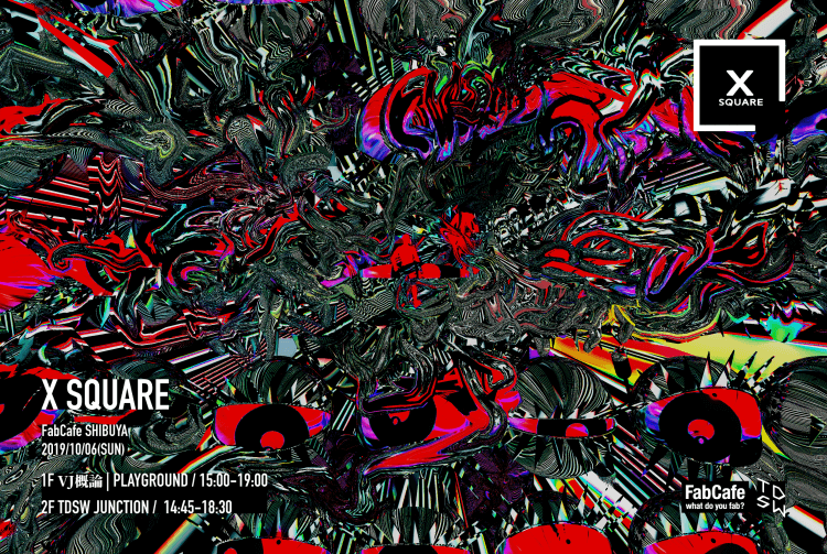 10月のFabCafe Tokyoのイベントとして、TDSW/VJ概論を主催とする、VJ及びビジュアル表現に興味を持つ方に向けたワークショップとコミュニティースペースの複合イベント「X SQUARE(クロス スクエア)」を開催します。5月の第一回が好評だったのに続き、第二回の開催となります。