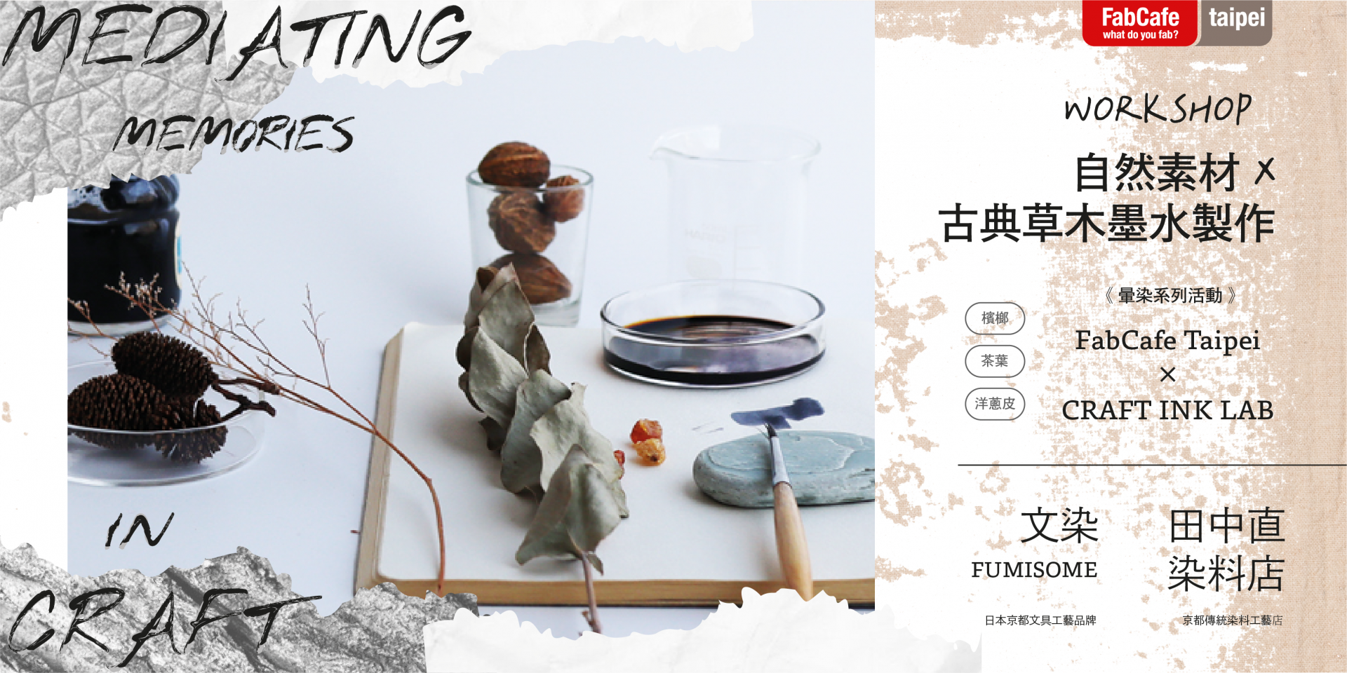 日本京都的文具工藝品牌 文染 FUMISOME 與 京都田中直染料店 將在 CRAFT INK LAB 活動中,來台使用草木材料製作筆記用墨水。活動與 FabCafe Taipei 合作,使用檳榔、茶葉、洋蔥皮等天然草木與回收材料,調製獨特墨水並探討自然素材發展設計文具的可能性。活動結束後,每人可獲得 25 毫升墨水。